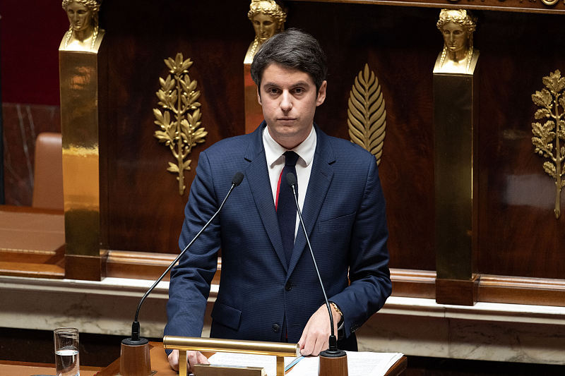 当地时间1月30日,法国新总理阿塔尔在法国国民议会就其施政纲领发表演说,提出劳动、公共服务、社会权威和环境4个方面的“优先行动”。