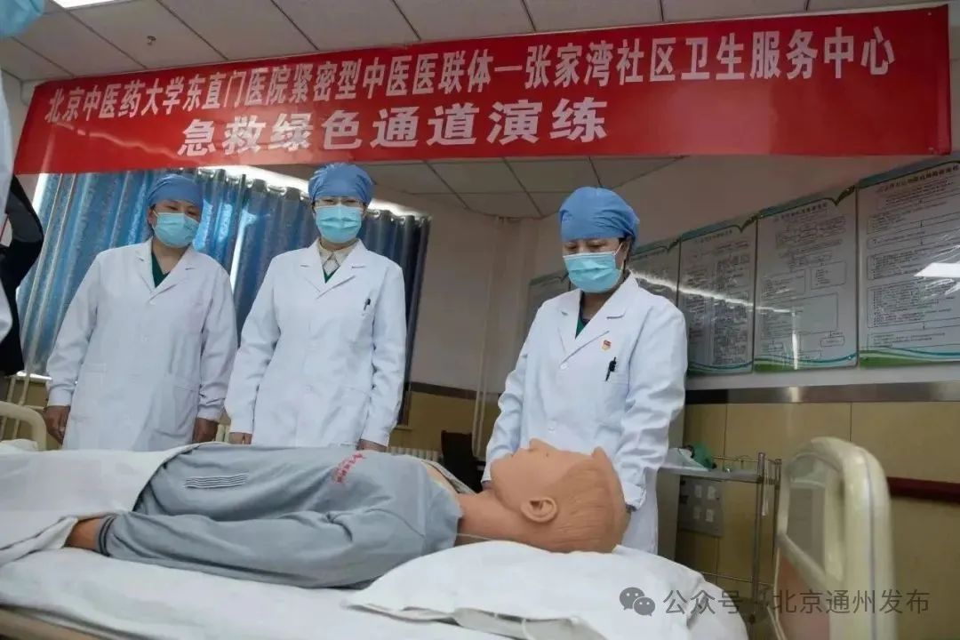 “这里是张家湾社区卫生服务中心,目前有一位急性心梗的老年患者,需要立即转至东直门医院进一步治疗。”演练在张家湾社区卫生服务中心开始。
