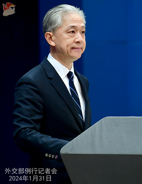 1月31日,外交部发言人汪文斌主持例行记者会。
