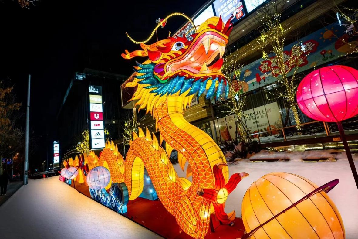 在丽泽金融商务区设置灯笼平安结250组、科技园区设置灯笼平安结176组,两处重点地区全部开启灯光秀,营造网红打卡地。