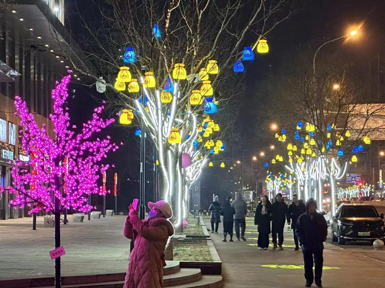 石榴庄街道打造流光溢彩的街区,引得市民驻足观看打卡,过年氛围喜庆洋溢。