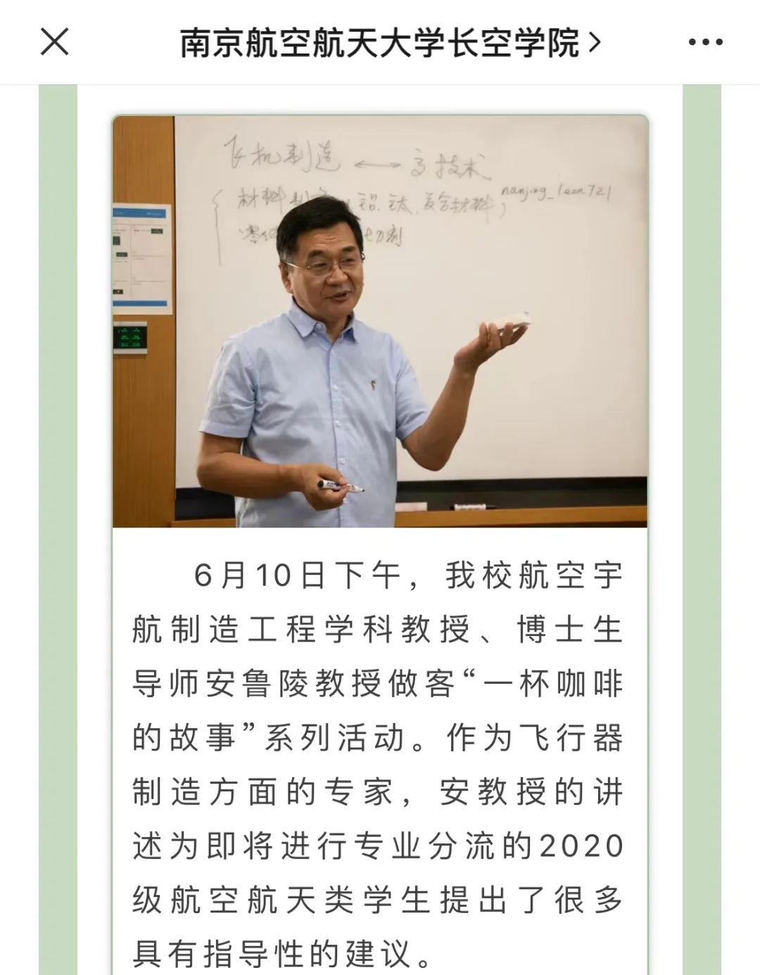 一拨又一拨的学生在商飞、西飞、成飞、哈飞等科研单位大放异彩,安老师很有成就感, “教书育人是我的初心,对于研究生培养,教书就是培养科研能力,育人就是培养综合能力。这是对自己的职业负责,更是对学生的人生负责。”