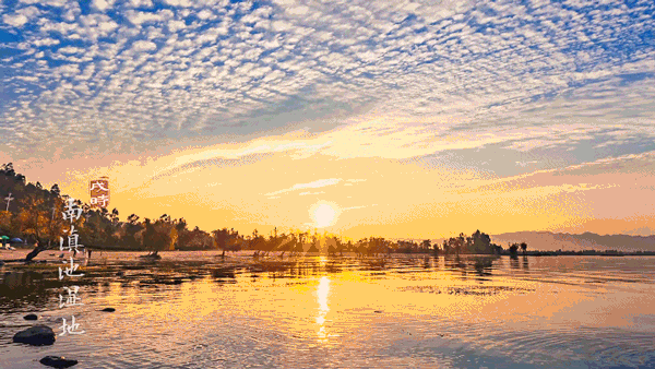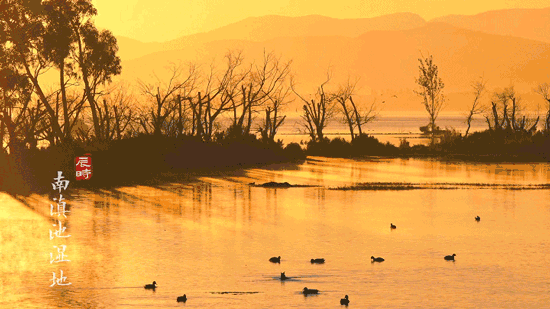 位于云南晋宁的南滇池湿地,碧波荡漾,风光旖旎,十二时辰充满诗意和宁静。