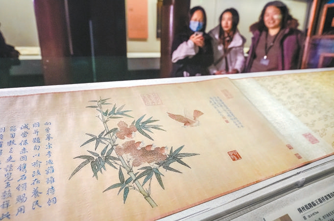采用缂丝技艺制作的乾隆临王穀祥雀雏待饲图卷展现出特有的立体感。本报记者 武亦彬摄