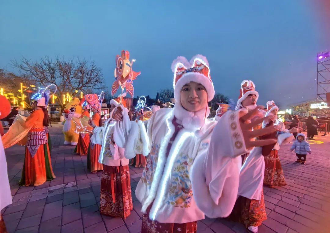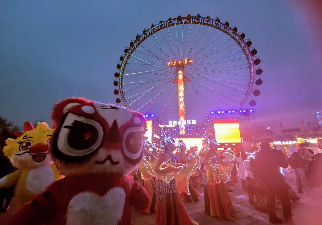 走进石景山游乐园,一串串火红的灯笼、一处处大型主题灯组、一场场精彩的演出,让游人置身园中就能感受到浓浓的节日气氛。