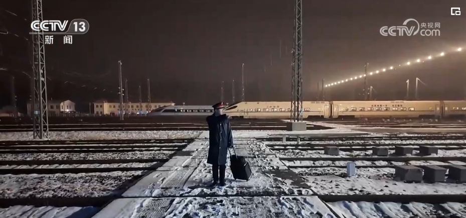 趁着茫茫夜色,动车组司机张洋从动车所出勤,执行当天高铁第一列“热滑除冰车”的执勤任务。
