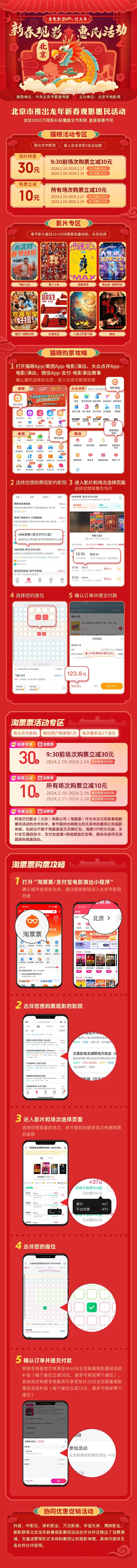 同时,各票务平台及各大院线将推出形式多样的惠民让利观影举措,例如保利影业推出的龙年新春首都市民电影文化惠民活动、博纳影业推出的“龙年新春大吉”促销活动等。