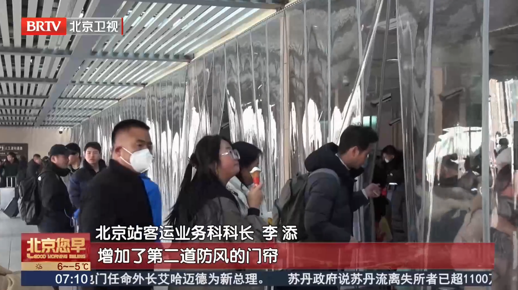 下午四点,记者来到北京站,入站口处的28个验票闸机全部开放,旅客有序检票进站秩序井然。北京站客运业务科科长李添表示,针对今年冬天的冷冬的情况,北京站提前做好准备,在原有一道门帘的基础上增加了第二道防风的门帘,同时又在门帘的上方加装了一排的热风幕,这样能够确保旅客从室外进到室内之后,感受到温暖,保证安检厅内的整个环境舒适。
