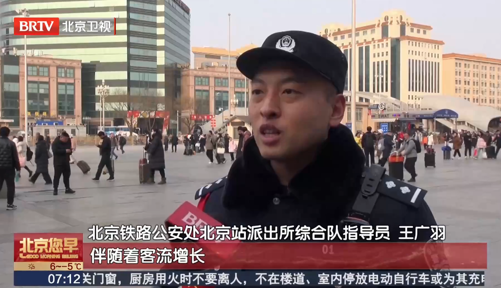 北京铁路公安处、北京站派出所综合队指导员王广羽表示,2024年春运期间,伴随着客流增长,北京站派出所增派警力,增加巡逻频次,保障旅客乘降车秩序安全。同时在此提示广大旅客在出行提前做好行程规划,避免因匆忙造成行李遗失遗落。此也提示广大旅客,在自己发生行李遗失、遗落或捡拾到他人行李物品时,请及时向车站工作人员或民警寻求帮助。