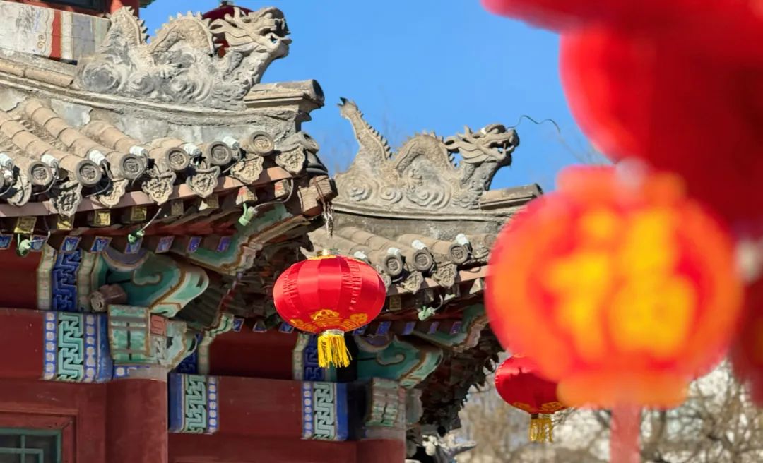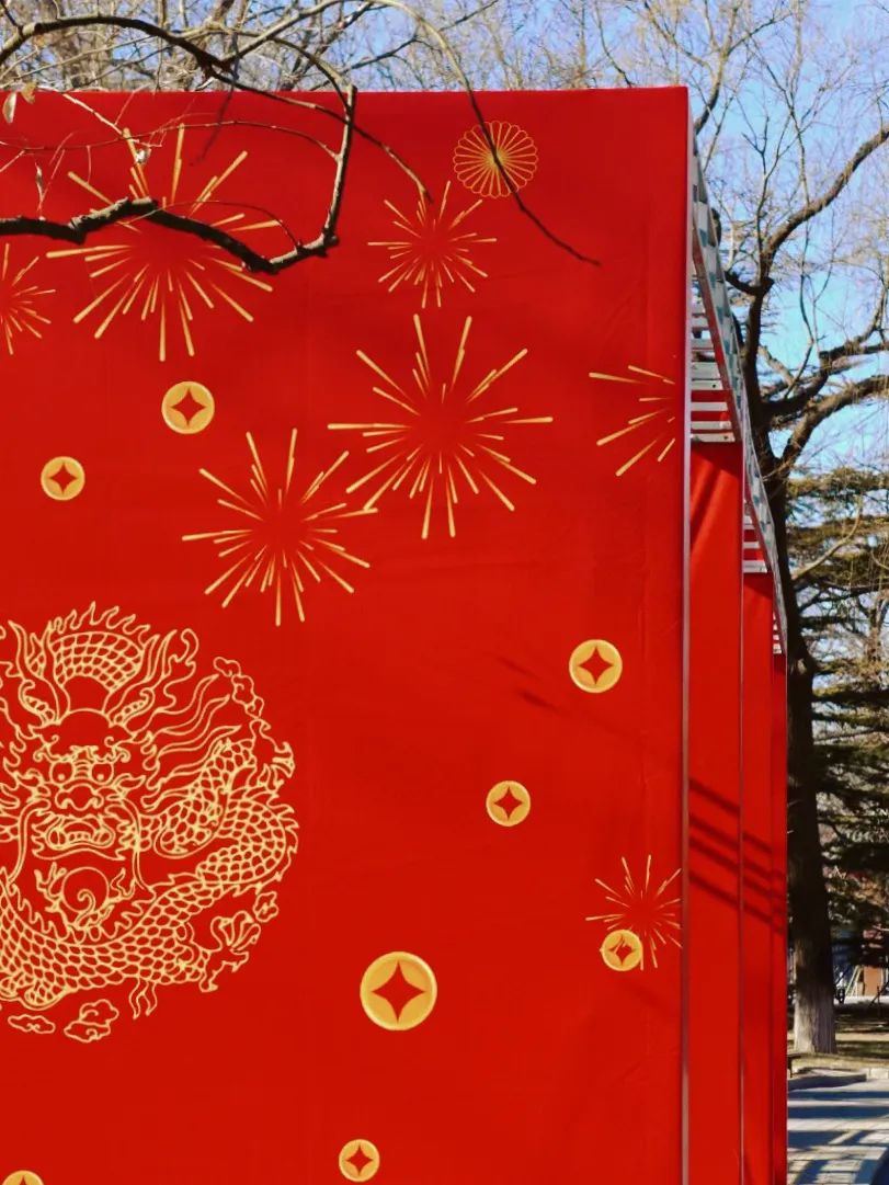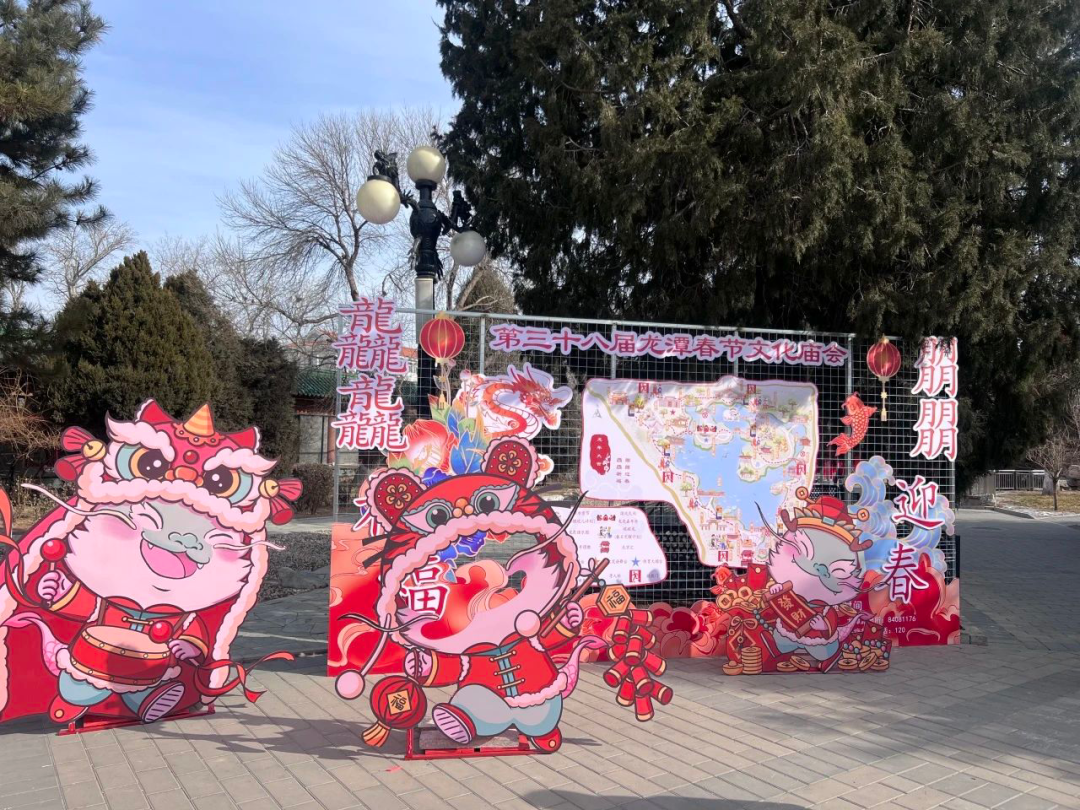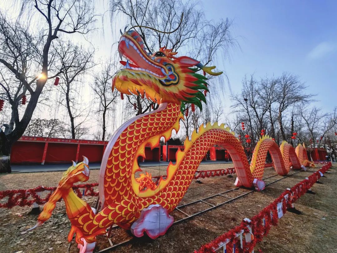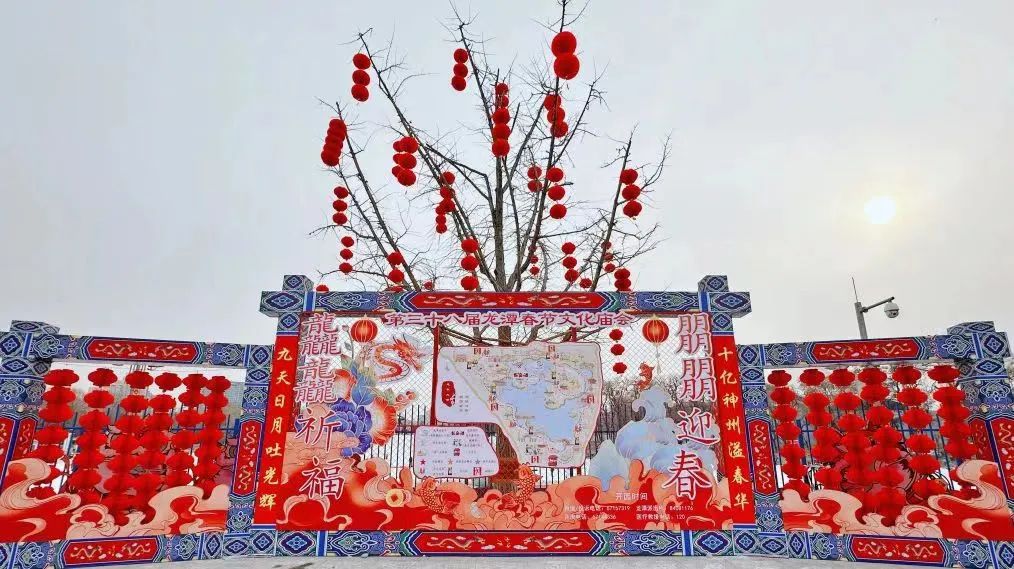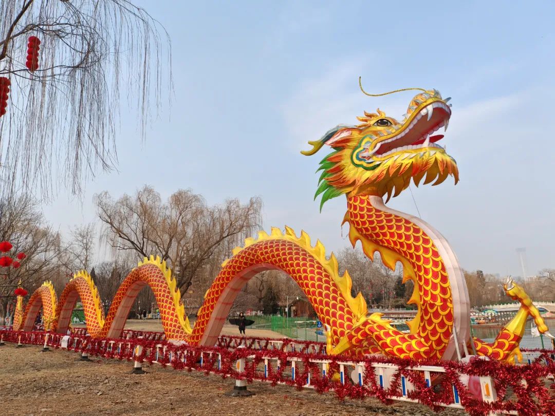 龙潭公园换上年味“皮肤”啦!灯笼、春联、福字等年味元素已就位,各类摊位也准备就绪,湖边的祥龙也正昂首以待,过年氛围拉满,提前“红火”,静待庙会的到来。