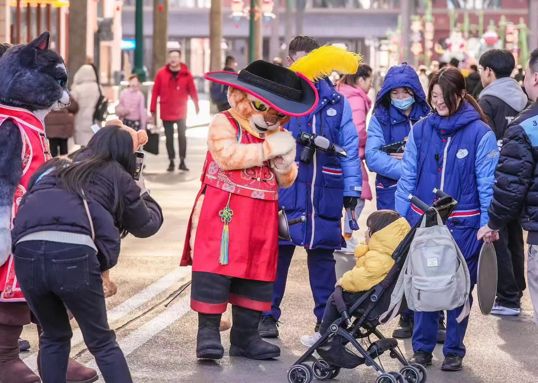 “园区里春节元素很多,很有过年的氛围,演出好看好玩儿,感觉和春晚一样!”一场年秀演出后,来自内蒙古的游客、今年10岁的张宸睿和妈妈兴奋地说。母子二人来到北京探亲过春节,出游第一站就选择了北京环球度假区。