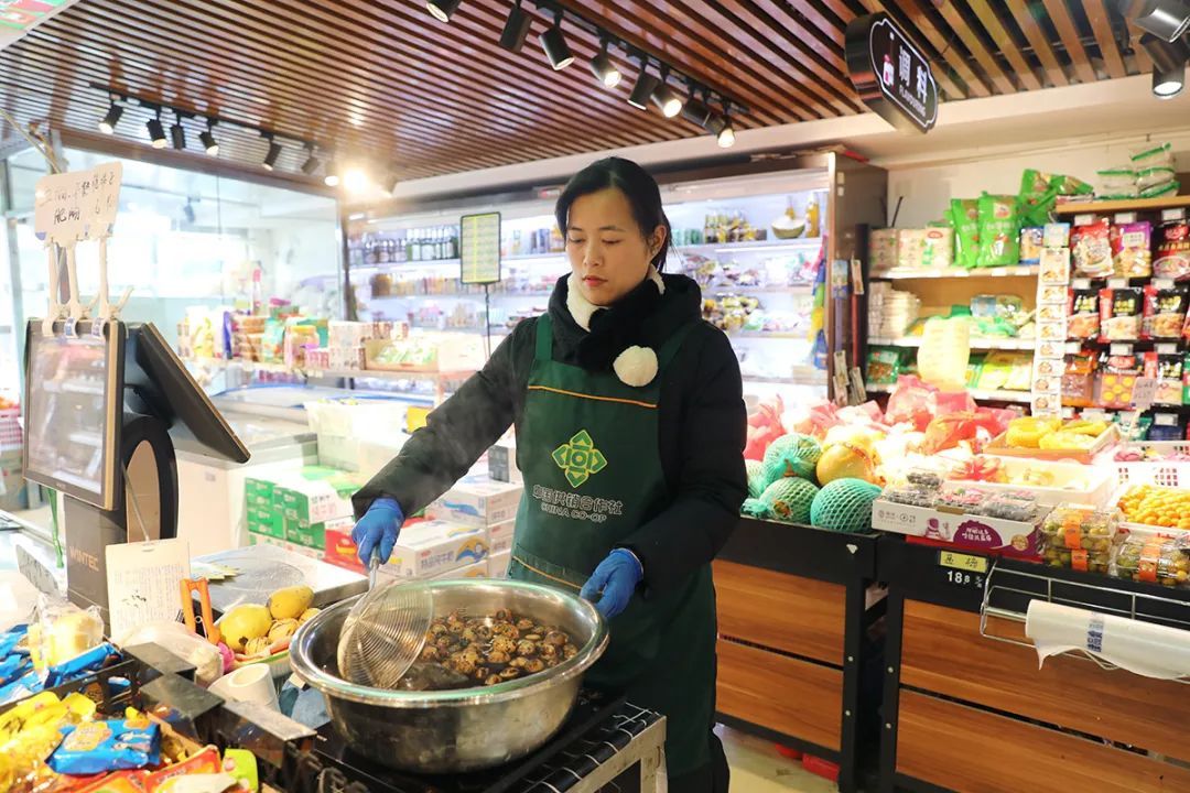 记者在供销益家西辛南区店看到,多种新鲜水果、蔬菜被整齐地摆放在货架上,品类齐全,量足价稳。市民挑选完货品后,工作人员及时补货。在店铺中央,工作人员正煮着热腾腾的鹌鹑蛋。“这两天比较冷,鹌鹑蛋含有丰富的蛋白质和多种维生素,买完就能吃。”供销益家西辛南区店工作人员说。