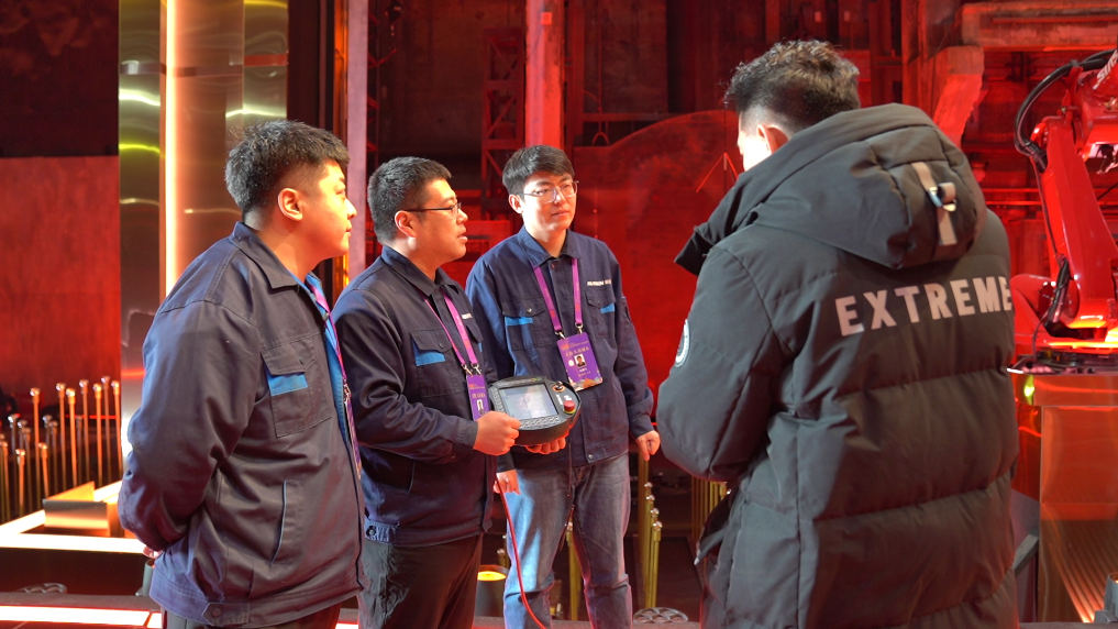确定参与春晚演出任务后,近10名机械设计工程师、工艺工程师对重载机器人的后台软件进行调整,为机械臂编排了多套动作。但是到了现场和各部门配合后,发现机械臂和演员之间缺乏互动,针对这一问题,项目组和研发人员一起探讨,把编程逻辑进行了调整,做了一些延时和加减速,提高了机器人的动态性能,不仅使动作和音乐旋律、节拍完全匹配,也更富有动感。