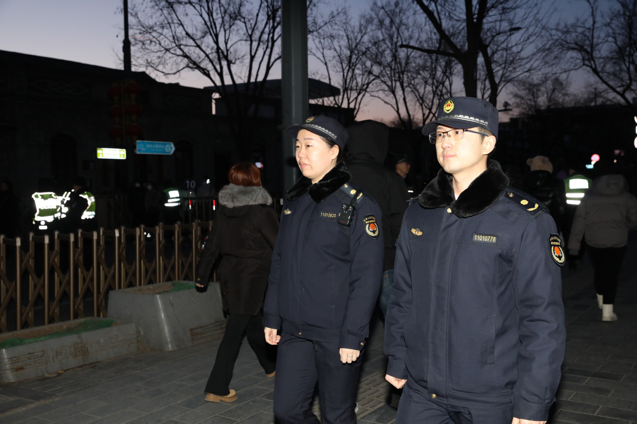据了解,春节期间东城区城管执法局以“区级统筹、属地主责、执法增援、协同作战”为工作思路,对两坛(潭)庙会、五大商圈、旅游景点、主要交通枢纽等重要点位全面开启环境秩序保障工作,每日派出局机关执法力量支援属地保障点位,同时加大督查检查力量确保履职尽责。每日8时—18时执法力量集中于街面环境秩序管控,在各重要点位设置专人专岗,保证24小时有执法力量在岗备勤。