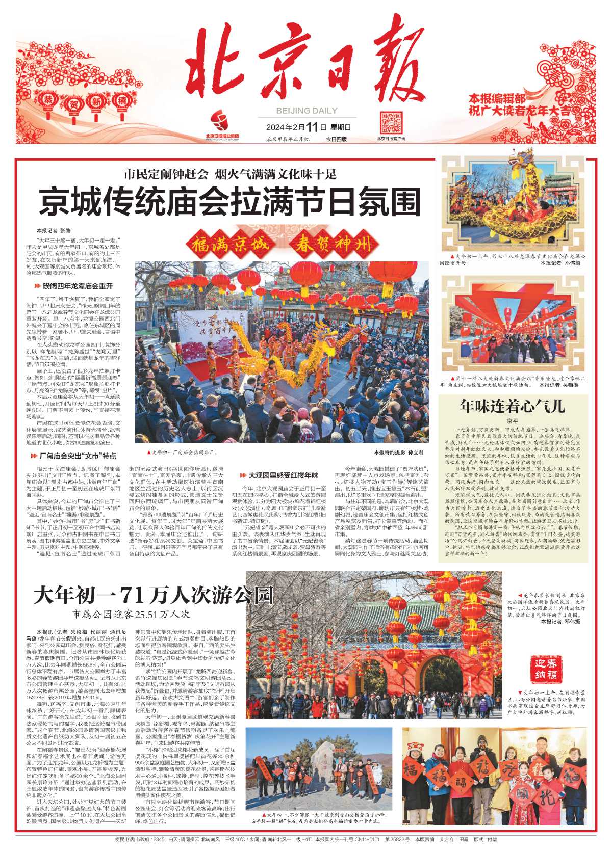 “大年三十熬一宿,大年初一走一走。”昨天是甲辰龙年大年初一,京城各处都是赶会的市民,有的携家带口、有的约上三五好友,在农历新年的第一天来到龙潭、厂甸、大观园等京城久负盛名的庙会现场,体验那热气腾腾的年味。详情>>