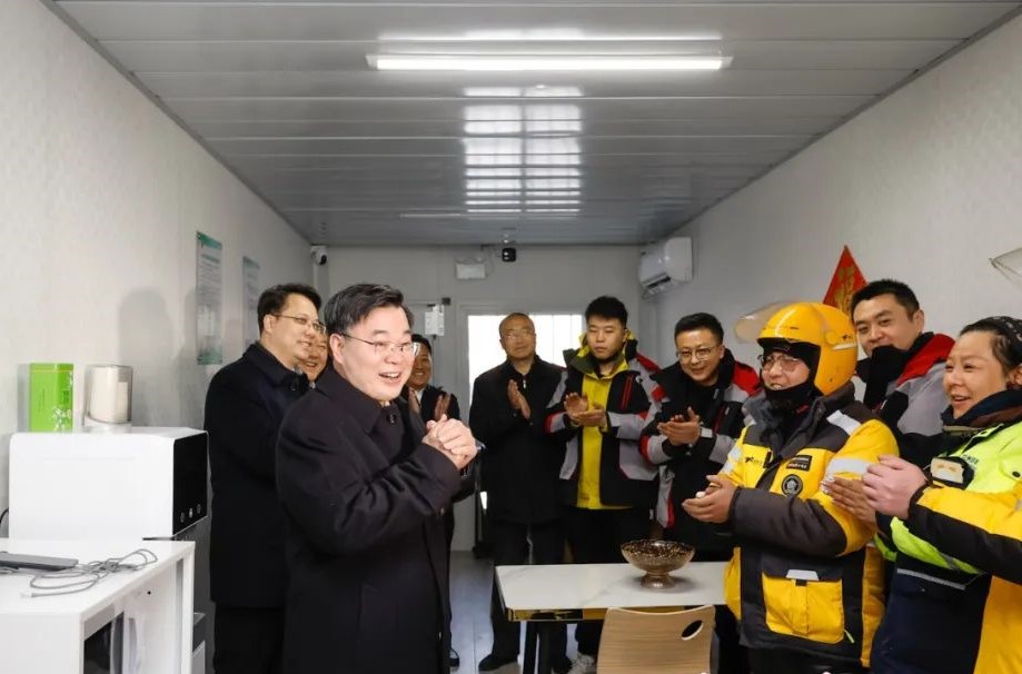 胡昌升还来到东方红广场南口户外劳动者驿站,与快递小哥、外卖小哥面对面交流,给他们送去节日祝福,并了解驿站设施功能、作用发挥等情况。他说,有关部门要持续提升保障能力,为广大户外劳动者提供“渴可喝水、累可歇脚、冷可取暖、热可纳凉”的暖心服务,在全社会营造关心尊重一线劳动者的浓厚氛围。