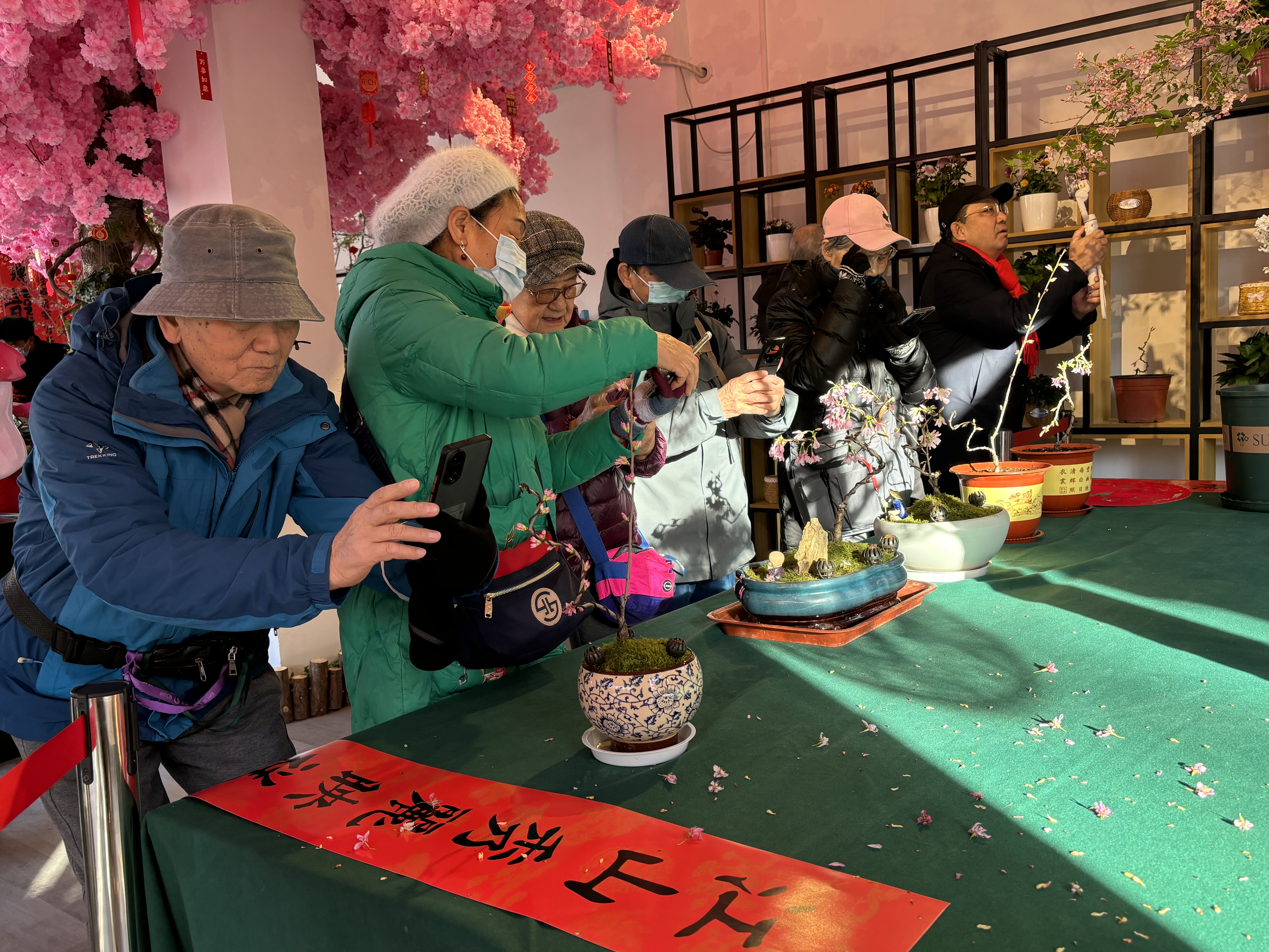 “哎呀,真好看,这个角度照得好!”更有沉醉其中的张女士难掩喜悦之情,激动地说:“听说玉渊潭公园小樱驿站早樱绽放,今天特地来看看,没想到又有意外之喜,如此别致的樱花盆景,真令人惊艳。” 张女士的喜悦溢于言表,这也正是玉渊潭科技人员为了让游客朋友可以在春节期间感受樱花的别样之美而潜心研究的成果。据公园园林高级工程师胡娜介绍:“这5盆盆景樱花历时3年时间培育,为首次对外展出。樱花技术中心科研人员在千余株籽播苗木中反复挑选,攻克了嫁接、枝条造型、控温促花等众多技术难题,才能达到今天的观赏效果。”