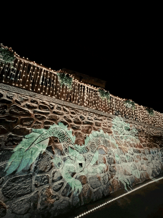 将龙的影像投射到墙上