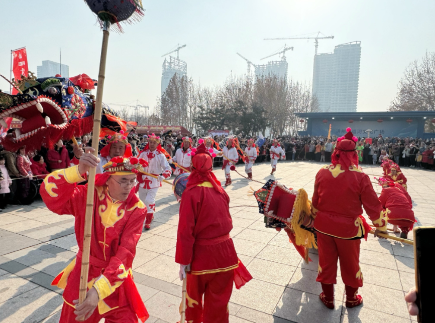 表演结束,队员们举着巨龙走出广场,一路上仍然有不少市民给他们拍照。“您看,这么多人都喜欢这项非遗。希望有朝一日,我们能走上春晚舞台!”谢兆亮说,大年初五上午,张庄村“运河龙灯会”还将继续在运河文化广场演出。