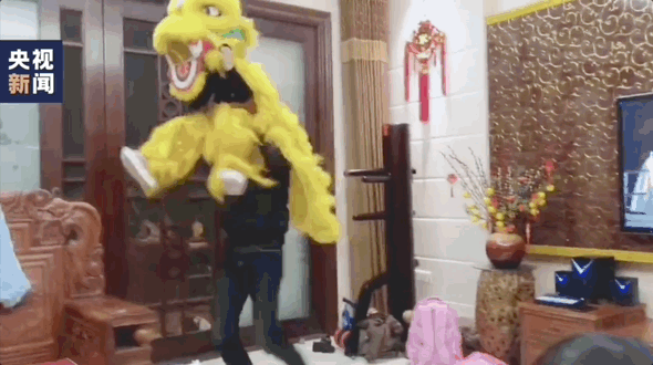 都会给家里人来一段舞狮表演