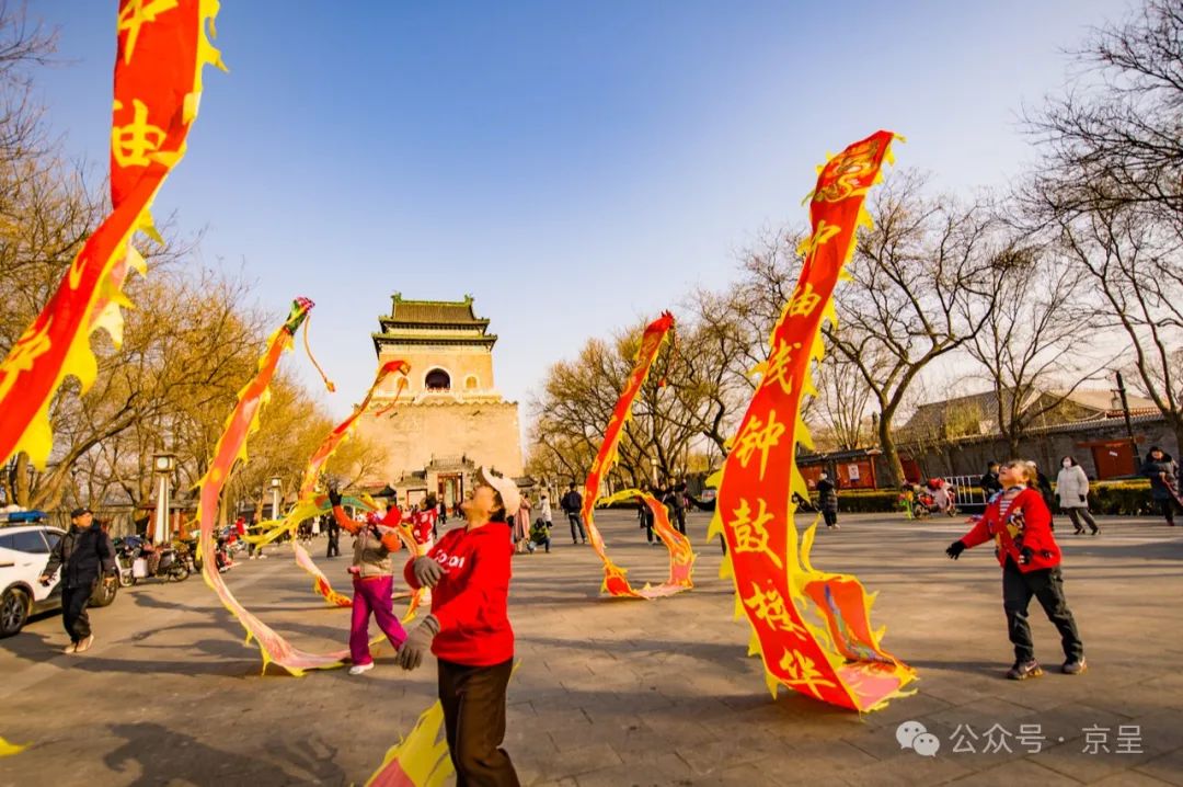 龙年舞龙带,迎接龙到来。钟鼓楼广场上,人们舞动彩龙,在中轴线上过大年。王彦杰 摄