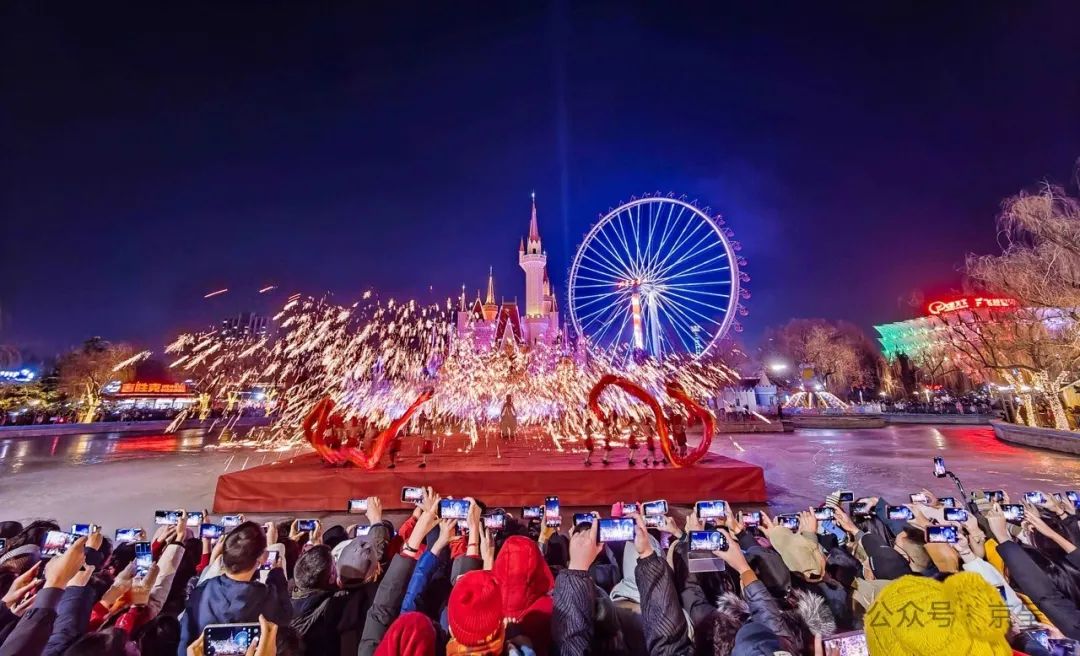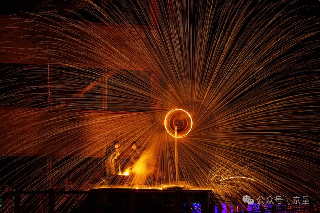 石景山游乐园首次举办“灯火游园会”,游客漫步园中,欣赏传统打铁花表演的浪漫与璀璨。吴福来摄