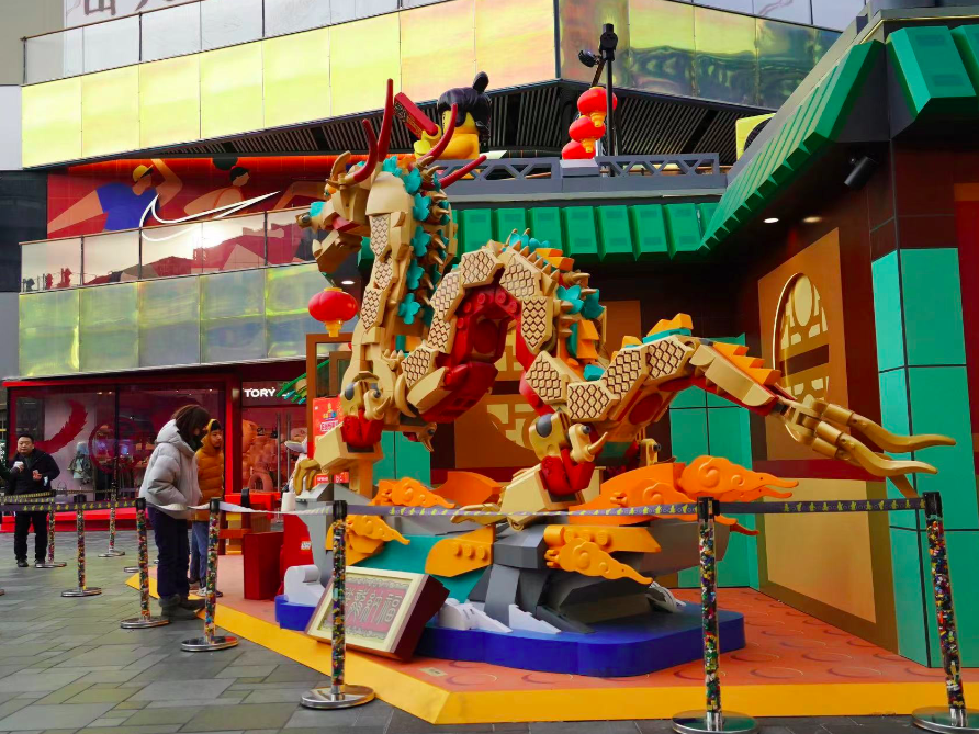 双眼圆睁的小狮子,怀抱金元宝满面喜气的财神爷,扎着红头绳举着红灯笼的女孩,活灵活现的舞龙舞狮队……在京城时尚潮流地标三里屯太古里街区,一场由巨型乐高积木人仔组成的新春游园会里,传统新春佳节与潮流文化碰撞融合,吸引了众多市民与游客前来游览,感受不一样的浓浓年味。
