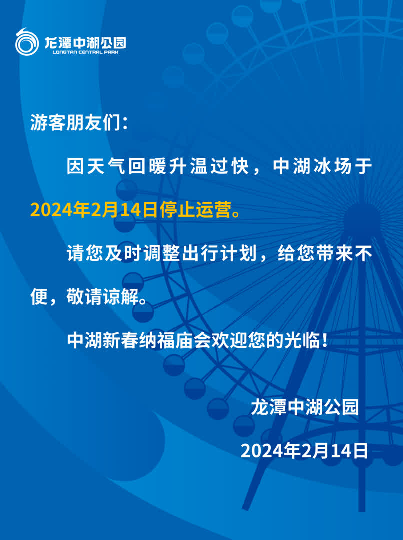 ▶ 龙潭中湖冰场(出溜儿冰世界)于2月14日停止运营