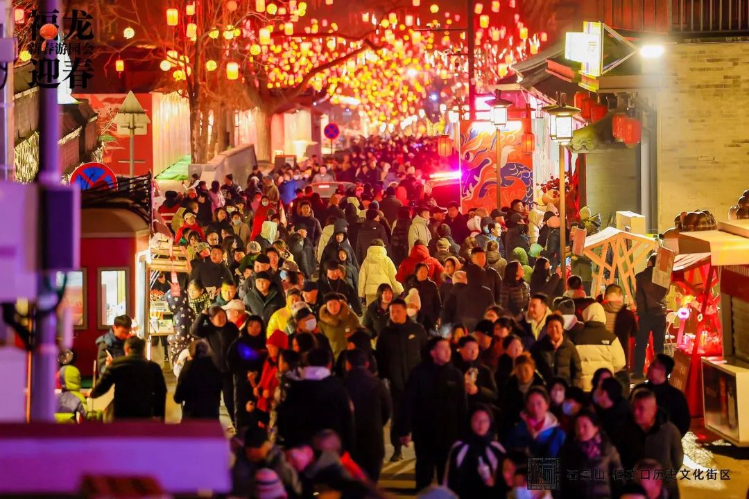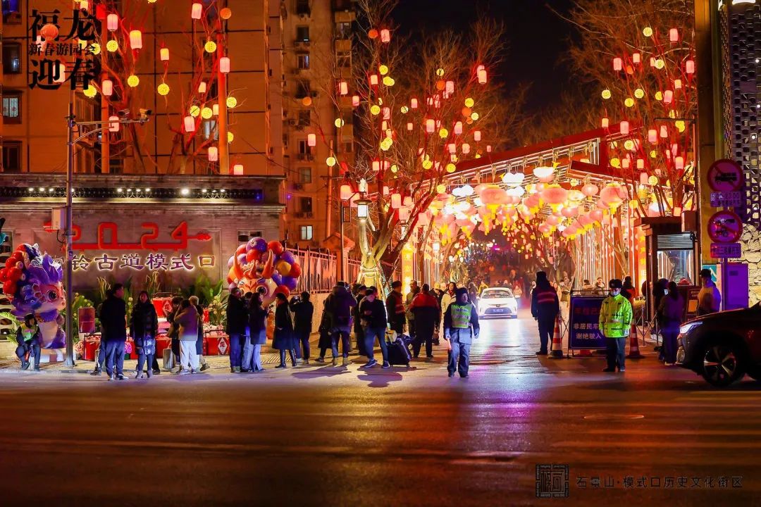 除了街区夜景以外,“邂逅京西·遇见美好—福龙迎春·新春游园会”也在如火如荼地举办中,古街人来人往,热闹非凡。