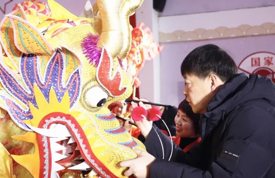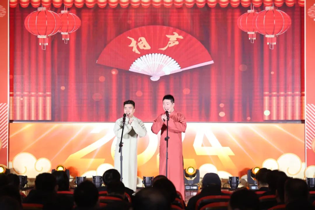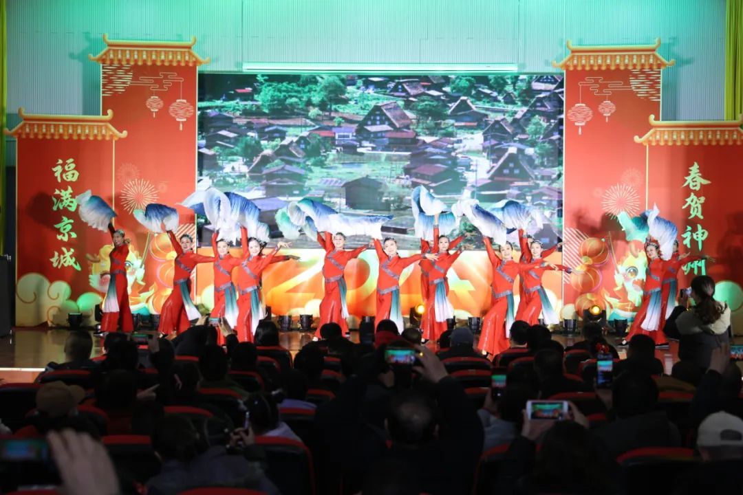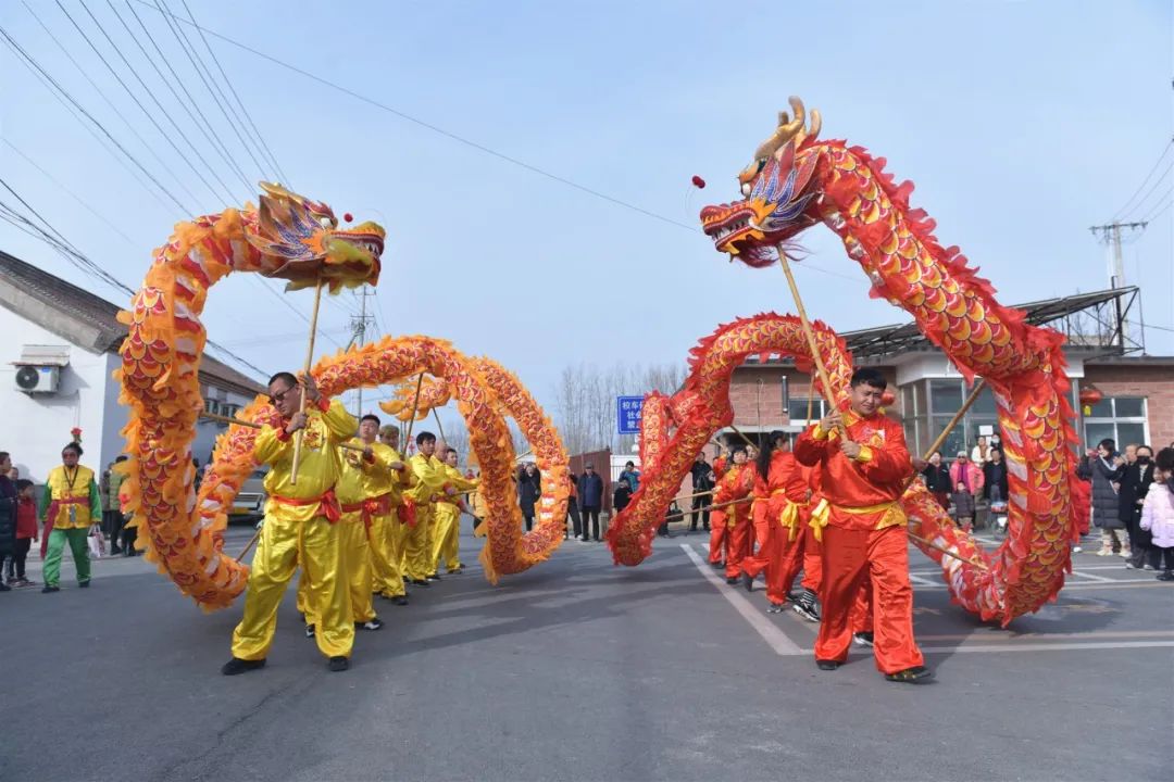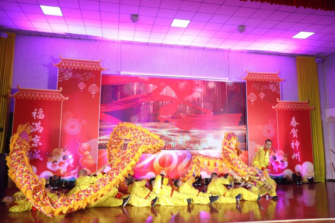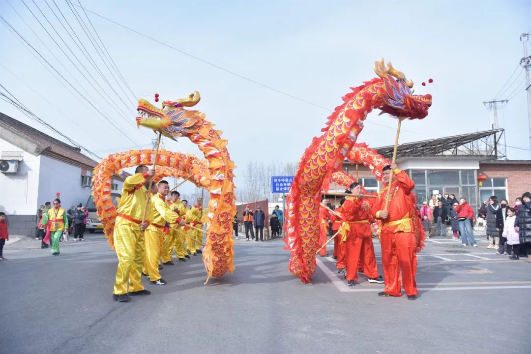 活动特邀北务镇龙狮舞艺术团到南郎中村进行舞龙演出。启动仪式上,两条舞动的飞龙从主会场观众席区域腾空跃起,而后盘旋至主会场舞台中央,伴随着新春鼓点的律动交互跳跃起舞,不断掀起现场高潮。随后,相声、舞蹈、戏曲等独具特色的文化节目轮番上阵,为现场观众带来了一场精彩纷呈的视听盛宴。场下掌声雷动,观众频频叫好,纷纷拿起手机记录精彩瞬间,大家沉浸在欢歌笑语声中,在精彩绝伦的演出和欢乐祥和的气氛中共庆新春佳节。