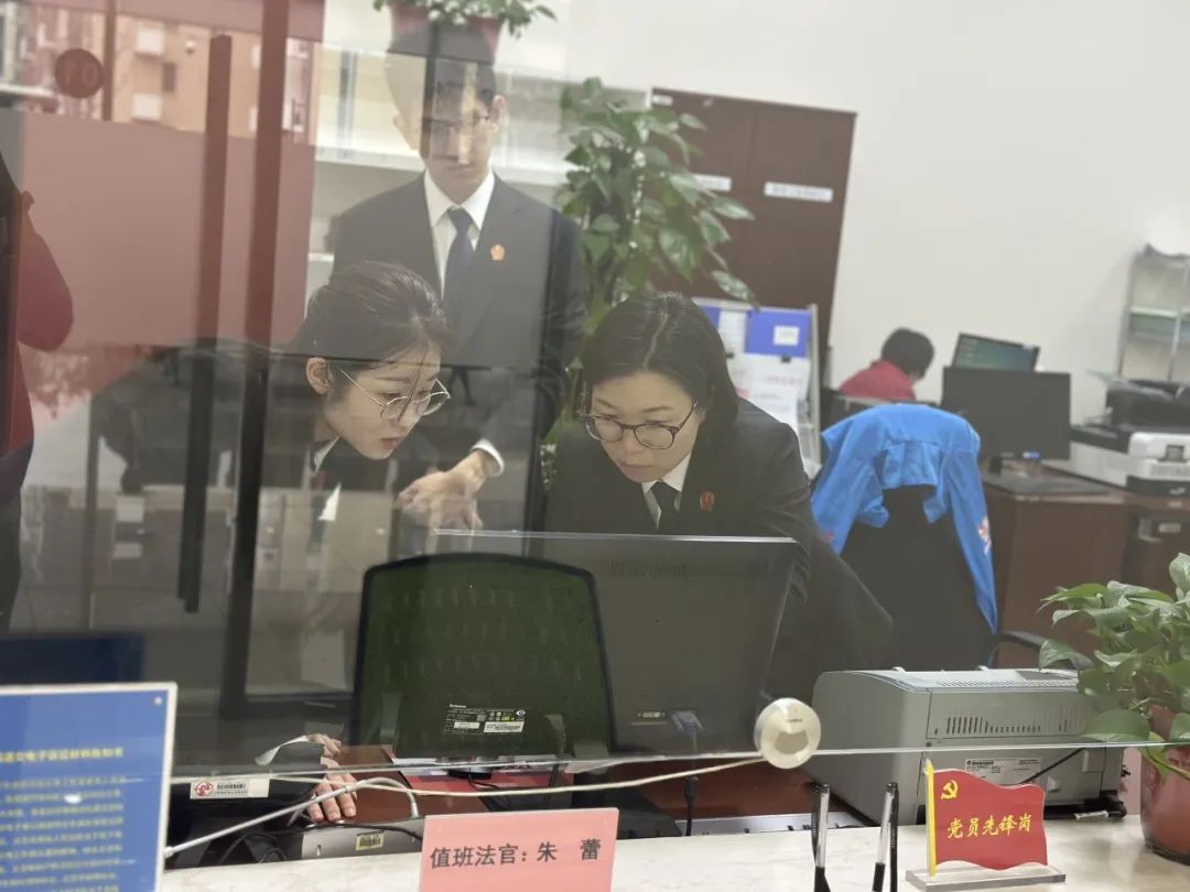 今天是北京知识产权法院法官助理李卓楠来到立案窗口工作的第一天,法官朱蕾及同事贾奥正在耐心帮助她梳理立案流程,为民司法服务的理念在“传帮带”中传承和发扬。