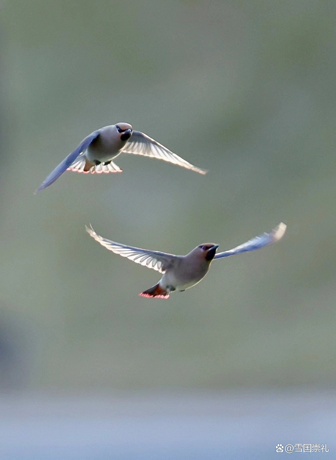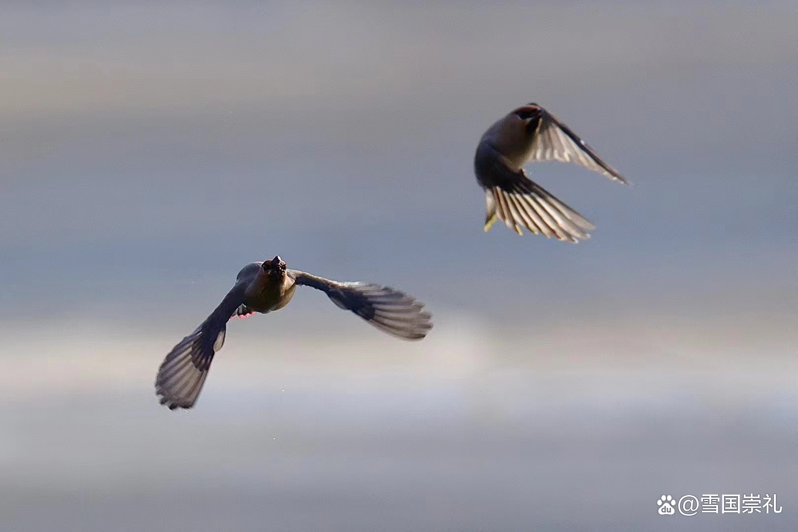 太平鸟比翼双飞,舞姿翩翩。钱永昕 摄