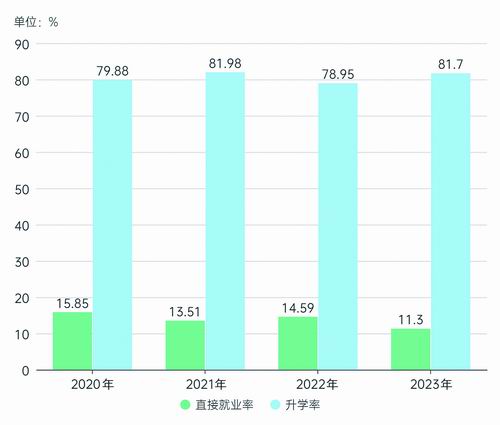 另一个典型代表是上海科技大学。该校2020—2023年各届本科毕业生直接就业率分别为15.85%、13.51%、14.59%和11.3%。与此相对应的是升学率的逐步上升,该校2020—2023年各届毕业生的升学率分别为79.88%、81.98%、78.95%和81.7%。
