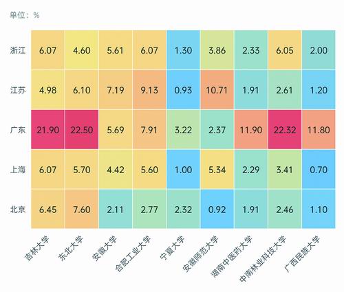 而在东北和中西部地区,高校毕业生的出国出境深造率则相对较低,即便是吉林大学,其出国出境升学率也仅为4.21%,宁夏大学和西南科技大学甚至低于1%。由此可见,地理位置优越且位于经济发达地区的毕业生,相对拥有更多选择机会,选择出国出境深造的比例更高。