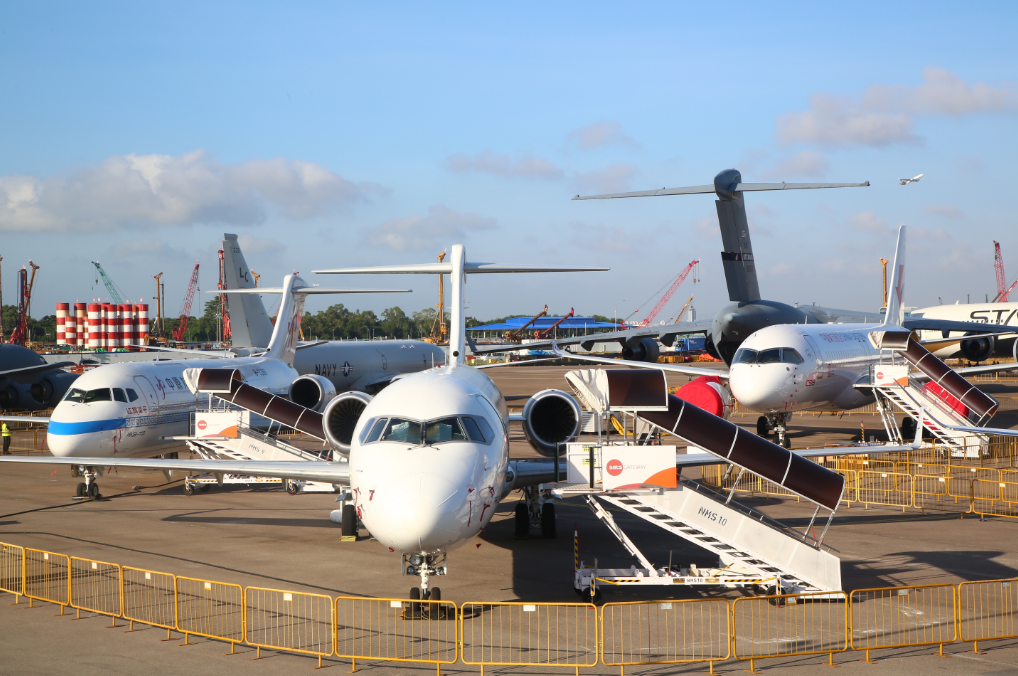 2月20日,新加坡航展在樟宜会展中心拉开帷幕,2架C919飞机和3架ARJ21飞机首次亮相,并通过馆内模型展览、室外静态展示和飞行表演等多种方式,向公众呈现中国商用飞机发展成果。