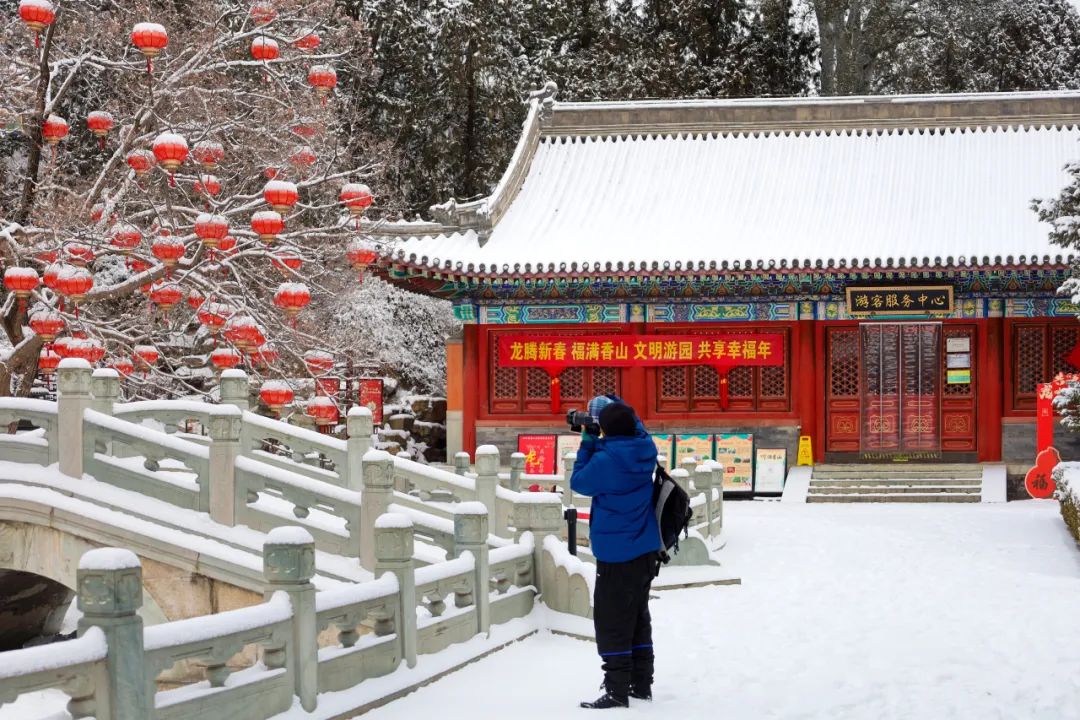 昨夜的一场降雪来得出乎意料,也来得格外“浓烈”,在龙年的第一场大雪中,香山披上了洁白无瑕的新装。雪抹去了时间的痕迹,让香山这座山林公园露出它最沉静的样子。