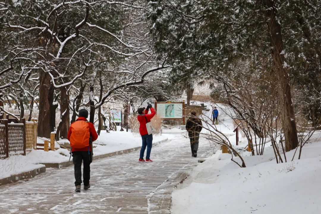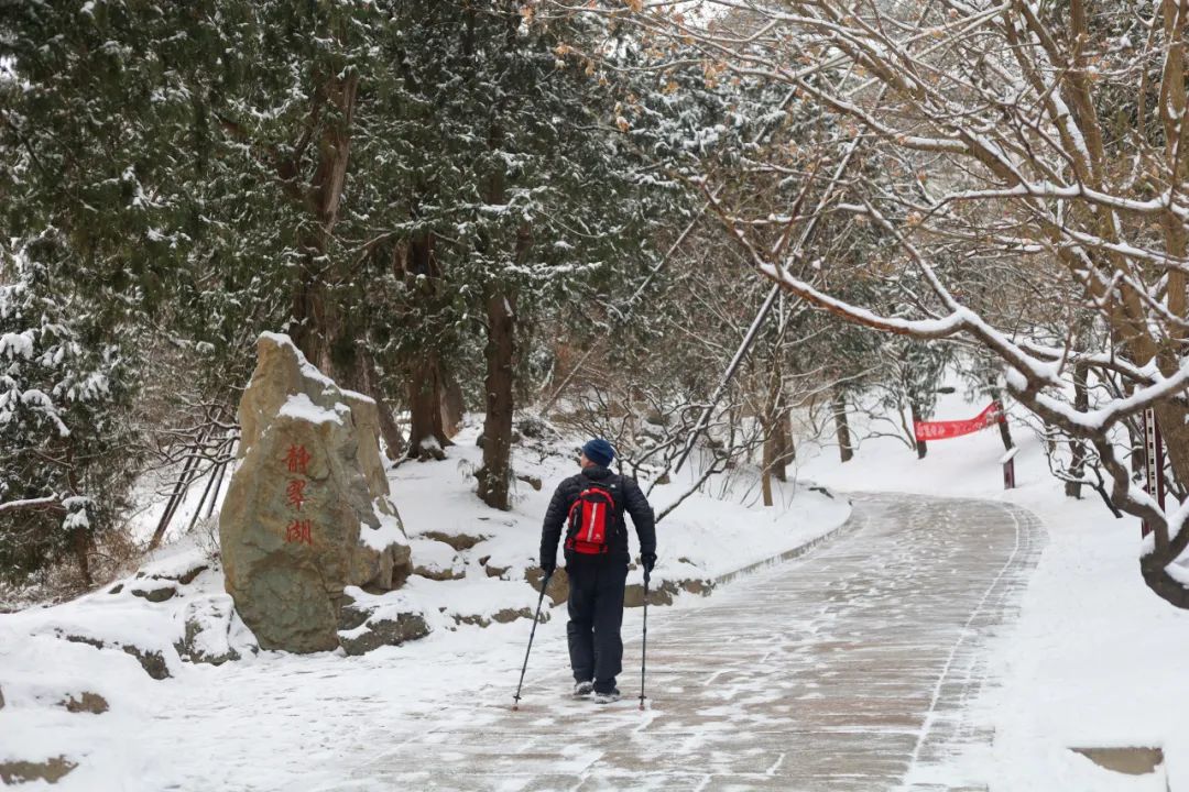 登山赏景的游客朋友们,雪后路面湿滑,一定要注意脚下,赏景不走路、走路不赏景,游览时可选择山下相对平坦的景区,您遇到任何困难,可拨打游客服务中心电话:62591222,我们竭诚为您服务。
