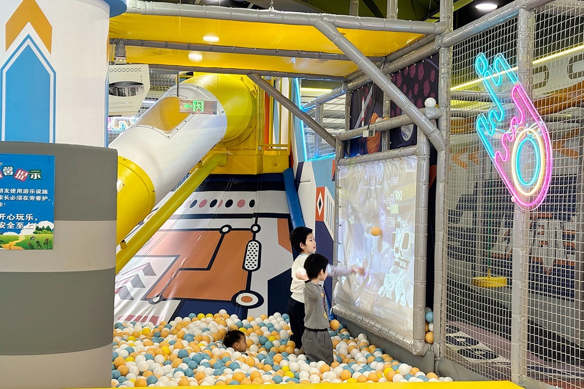 小朋友在北京鲲熙汇LOMO玩耍。