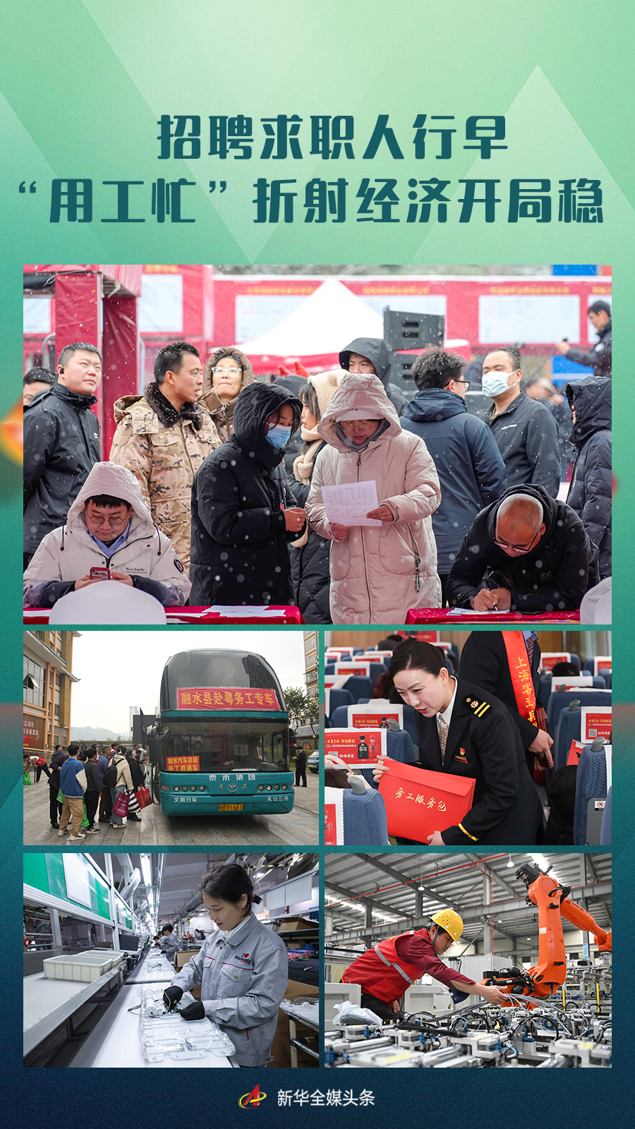 “用工忙”折射开局稳,释放出经济运行回稳向好的信心。从跨省招工、专车专列接人返岗,到密集招聘、发布稳企拓岗新政策……各地抢抓劳动者流动及企业复工关键期,全力保用工、稳就业,努力跑好龙年稳经济第一棒。