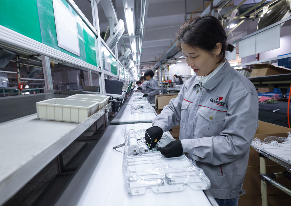2月19日,工人在位于浙江金华市金义新区的浙江好易点科技股份有限公司车间内组装智能晾衣机。据介绍,该公司已形成年产智能晾衣机100万套生产能力。新华社记者 徐昱 摄