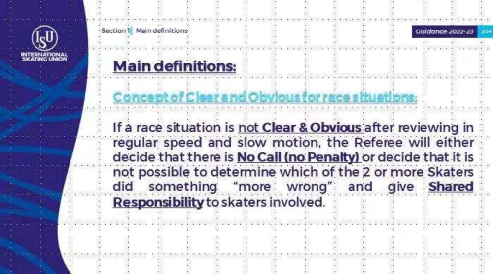 本次比赛共有五次共同责任的判罚,依据国际滑联技术委员会的“共责”定义和解释。(见图)