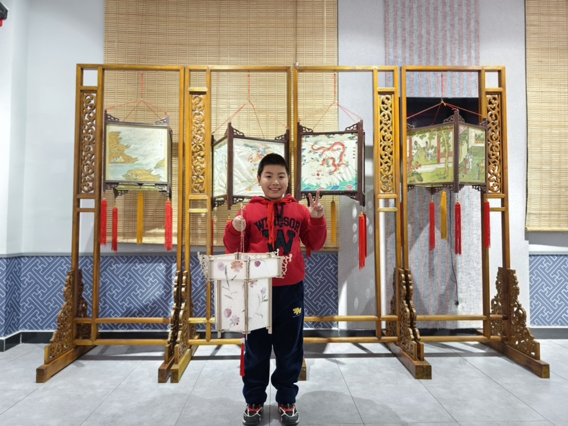 纱灯是沙河村的“特色”,于2016年入选大兴区级非物质文化遗产代表性名录项目。纱灯制作工艺复杂,20多道工序都靠纯手工完成,不仅包含着高超的工艺技巧,更蕴含着深厚的历史文化底蕴。在展厅内,青少年们参观了沙河村传承数百年的绢纱灯笼。这些绢纱灯笼精美绝伦,有的还曾登上过服贸会的舞台,让青少年不禁发出阵阵惊叹:“原来咱们大兴有这么美丽的文化瑰宝!”