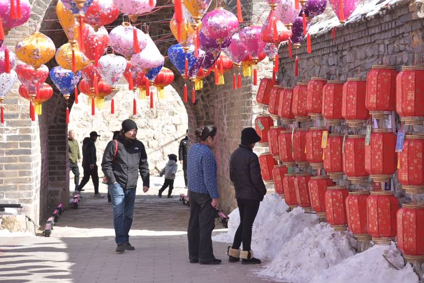 当晚,随着点亮仪式启动,长峪城永兴寺、永兴寺前古榆树、九曲黄河灯、大月亮景观等同步亮起,夜幕下的长峪城村增添了靓丽色彩。在村里的街道走一走,浓浓的“年味儿”扑面而来,主街城墙上的灯带勾勒出了灯光长城,从瓮城到永兴寺道路两侧一路挂起多个写着祝福的火红灯笼,和五彩斑斓的彩灯一同营造出了璀璨的夜景。“一个个红灯笼和形式多样的彩灯,不仅美化了我们的居住环境,营造了浓厚的节日氛围,还预示着我们未来的日子像这灯笼一样红红火火,像彩灯一样丰富多彩。”村民宋振银说。