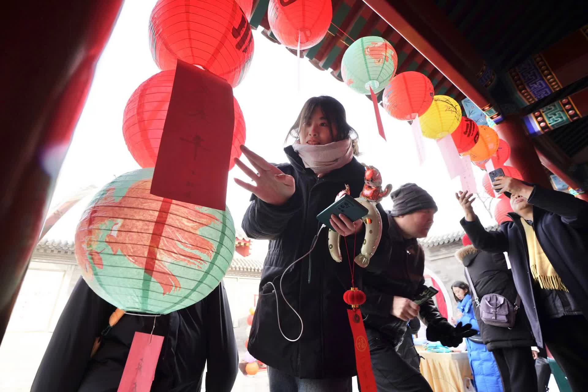 2月24日,农历正月十五元宵节,坐落于东四四条胡同77号院的东四胡同博物馆开展传统元素与现代风格相结合的胡同国风元宵赏灯盛会。国潮灯笼点亮了四合院,胡同内外的居民猜灯谜、做花灯、摇元宵、穿糖葫芦、品北京小吃.....东四胡同博物馆三进四合院内,网络祝福语构成了一面新年祝福灯笼墙,给胡同内外的老街坊带来一场“趣味”闹元宵体验。