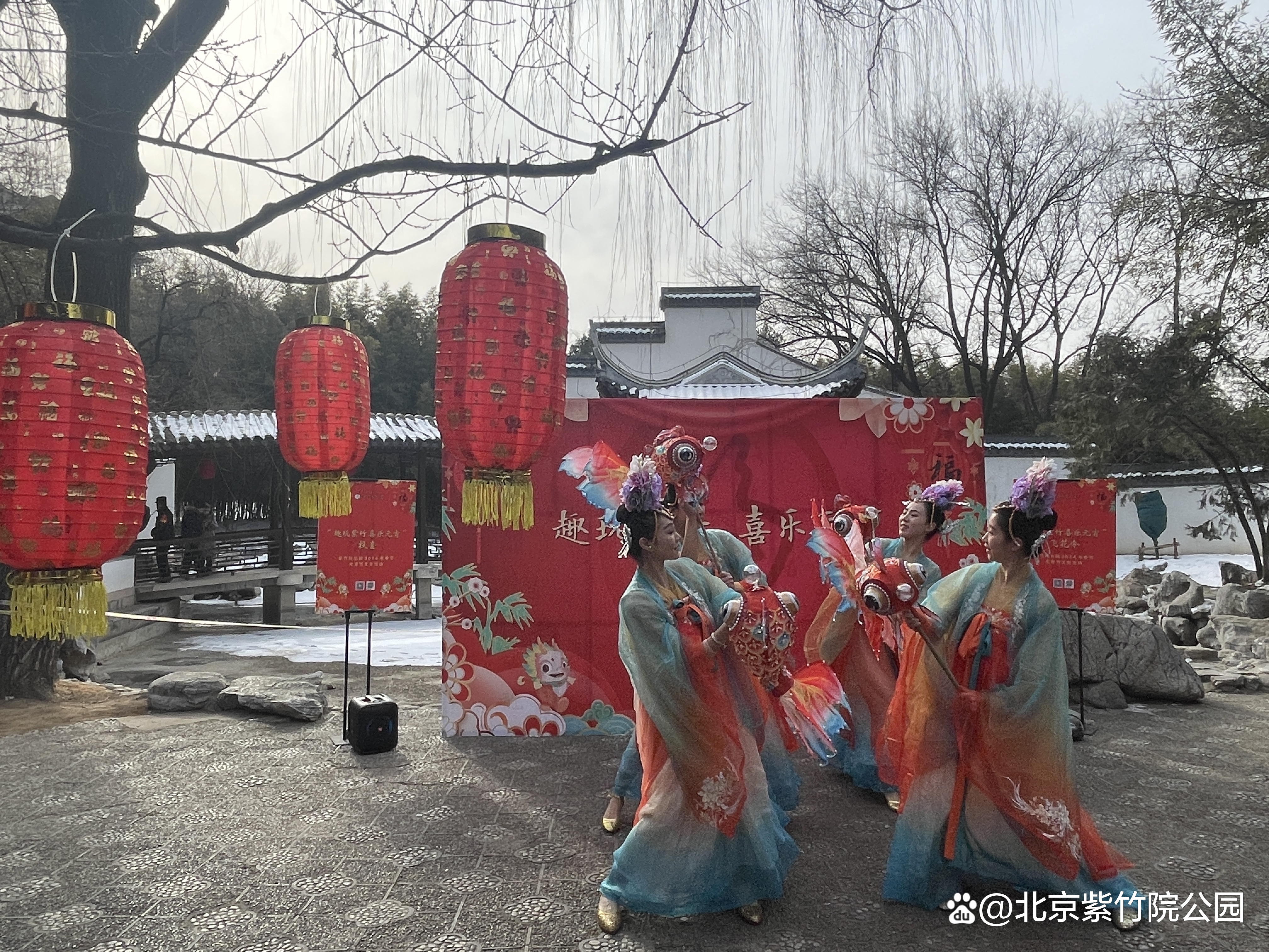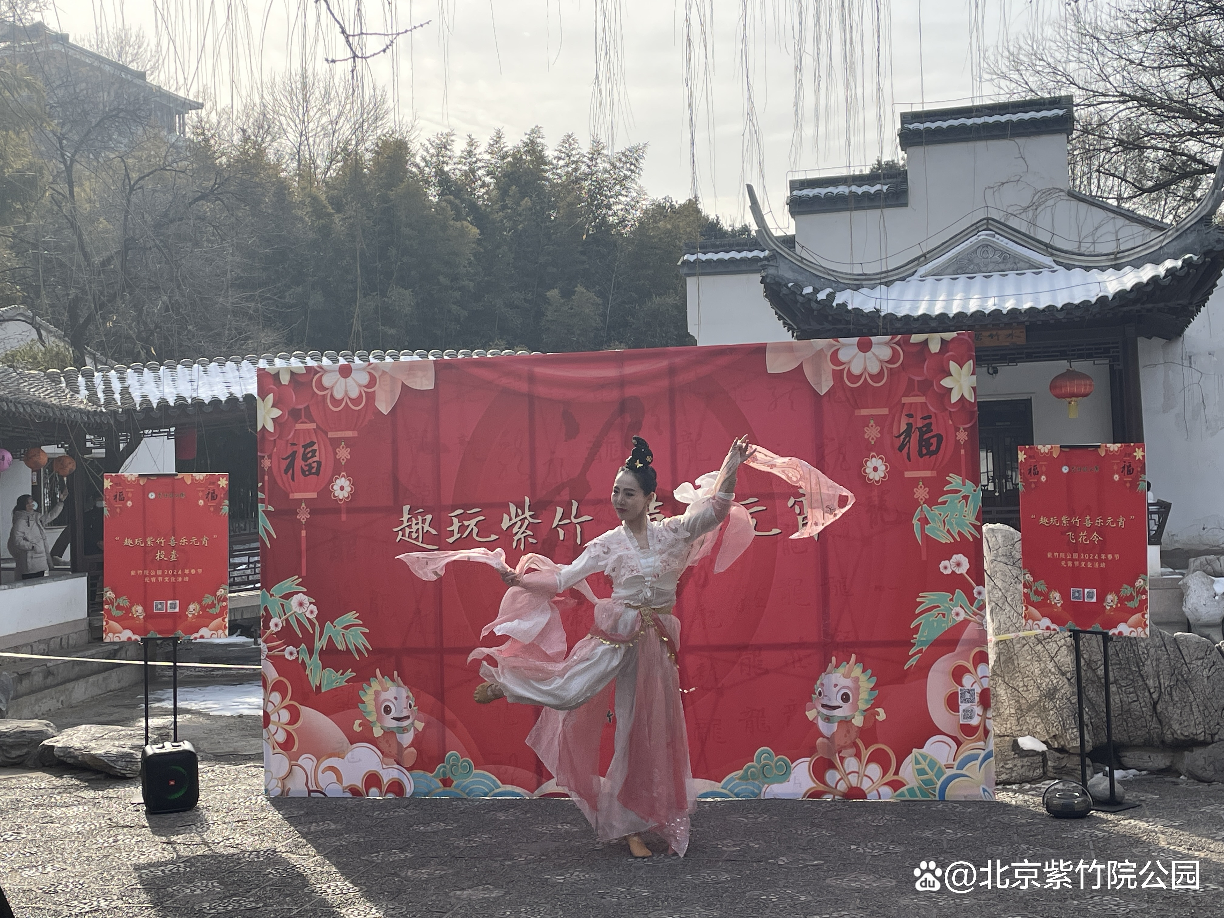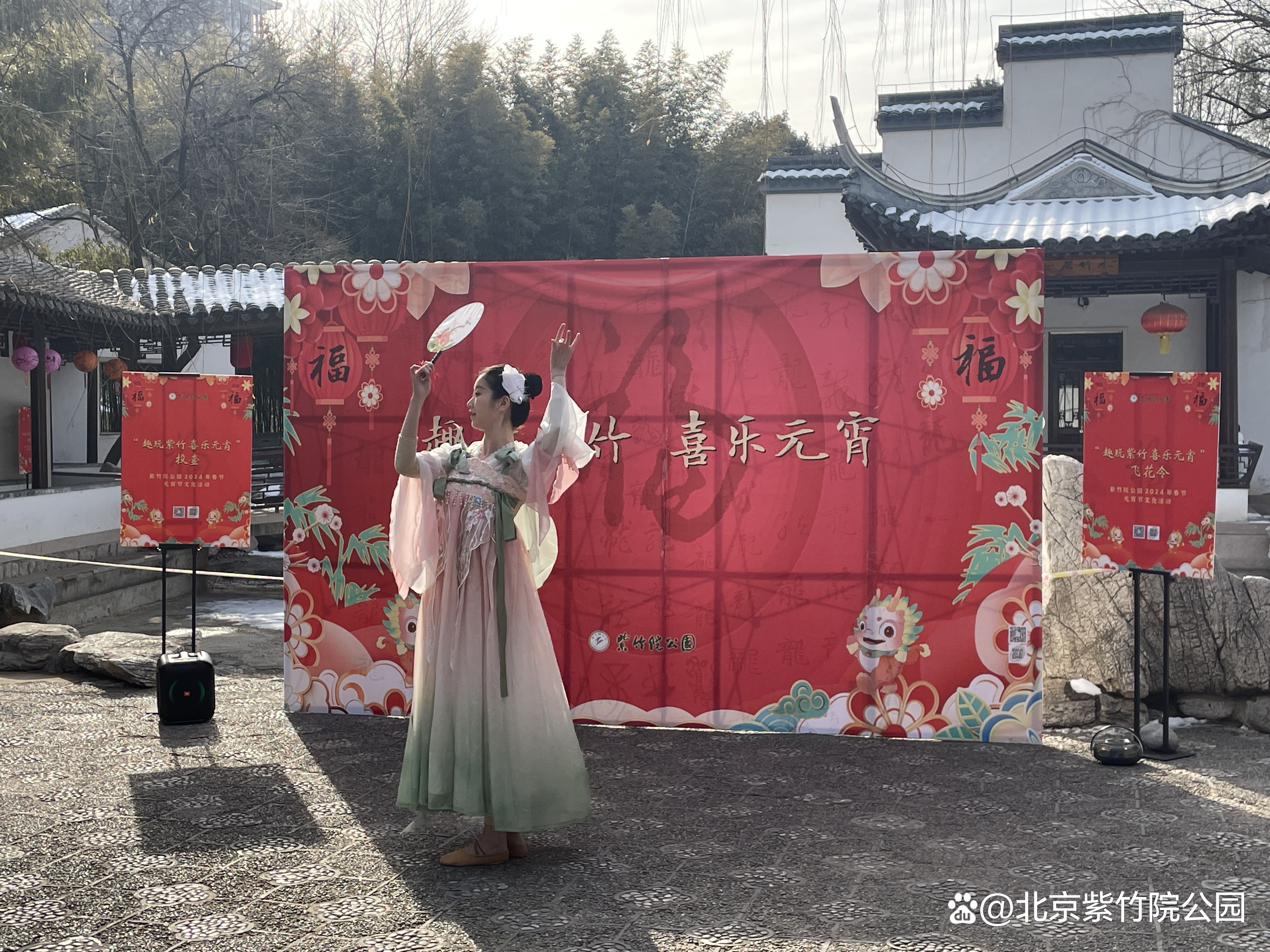 正月十五上午,紫竹院公园举办“趣玩紫竹 喜乐元宵”主题活动。本次活动有器乐演奏、舞蹈表演等多种民俗特色节目,以及灯谜竞猜、民俗游戏等互动活动,通过线上直播及现场互动带领大家感受中华传统文化的魅力,品味民乐之美,共度原滋原味的元宵佳节。