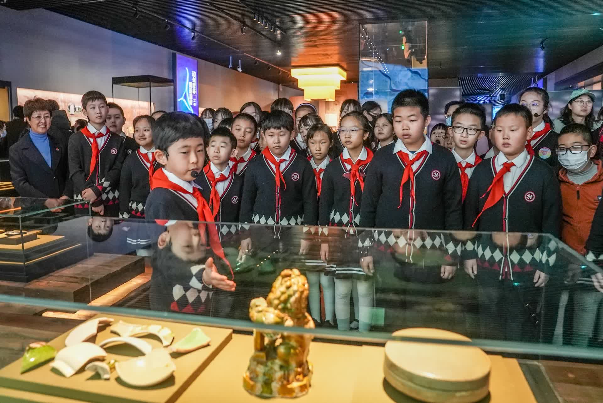 走进展厅,小讲解员们和博物馆的讲解员合作,一起为大家解读展览。从目前最早发现“通州”一词的实物见证——金代石宗璧墓志,到通过大运河运输进京的元代景德镇瓷器,再到讲述新时代故事的“大运河保护与申遗纪念标”……近1个小时的“课程”,师生们收获颇丰。“这趟博物馆之行,让我对大运河的历史文化有了更深的了解。”四年级学生王嘉驰兴奋地和大家分享学习感受,他说,自己从小生长在大运河边,城市副中心的发展让他感到非常自豪,“我要努力学习,不断丰富自己的知识储备,从参与志愿服务做起,为传承和弘扬大运河文化贡献一份力量。”