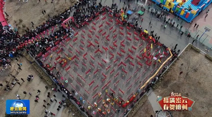 九曲黄河阵在密云已流传600多年,2008年6月被国务院批准为第二批国家级非物质文化遗产项目。九曲黄河阵按周易九宫八卦方位排布,将古老的阵法与民间花会相结合。活动开始后,百余名村民组成的11档节目由五面中幡前引,狮子、轧鼓、高跷、十不闲、吵子等依序而入。观看的群众也在随后加入其中,顺利通过连环阵,意味着新的一年平安健康、万事顺遂。