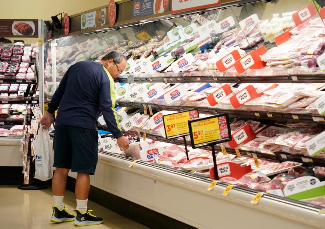 2月13日,顾客在美国加利福尼亚州米尔布雷的一家超市购物。新华社发(李建国摄)