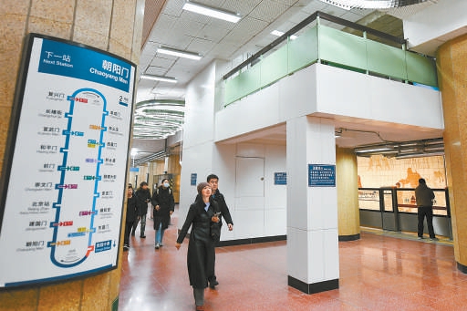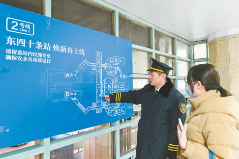 负责东四十条站运营管理的地铁三元桥站区站区长刘祎晨告诉记者,东四十条站具有强烈的时代印记,在此次站内改造时,依旧使用车站同色系、同花纹的物料,车站装修保持“原汁原味”,保留住了老站的时代特色。