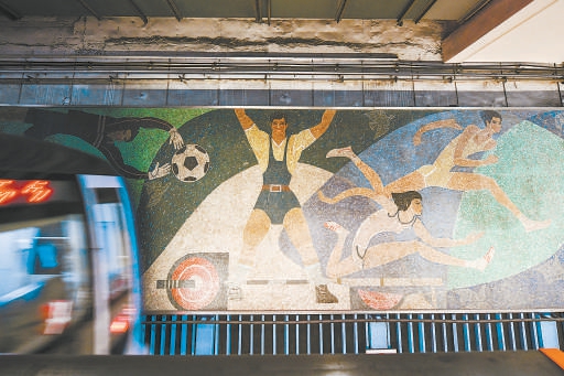 值得一提的是,东四十条站站台上设置了《华夏雄风》和《走向世界》两幅大型壁画,展现了体育健儿的勃勃生机,在北京众多地铁站中独具一格。记者注意到,此次改造施工并未对壁画区域进行改动,东四十条站的两幅壁画得到了完整保留。